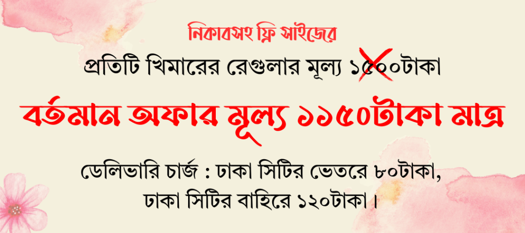হযরত আয়িশা রা. হতে বর্ণিত এক হাদিসে রাসুল সা. বলেছেন- খিমার পরিধান ছাড়া কোনো প্রাপ্তবয়স্ক নারীর নামাজ কবুল হবে না। (তিরমিযি ৩৭৭)
